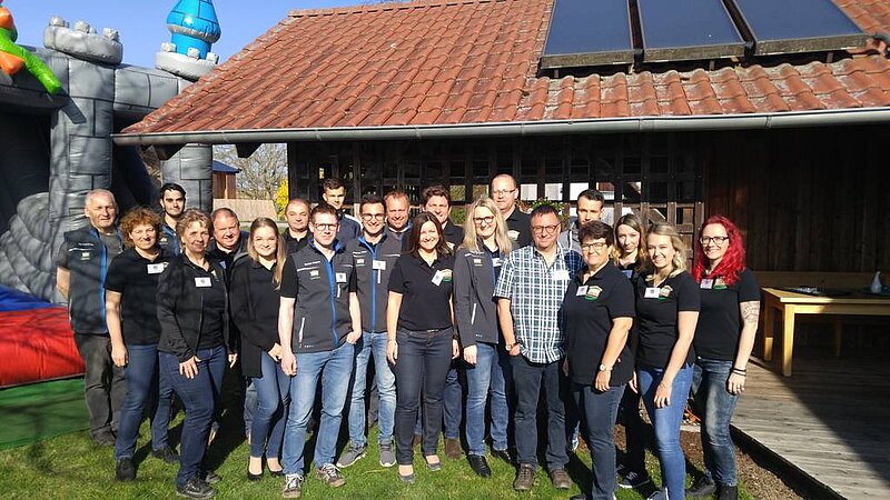 Mit 35 bedrucken Funktionsshirts honoriert die Firma Huber Holzbau in Falkenberg die Jugendarbeit. Dank der Spende können die Jugendlichen bei Wettkämpfen, Leistungsabzeichen und weiteren Aktivitäten einheitlich auftreten.
